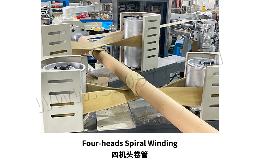 本机器主要适用于生产铝箔纸内芯、卷筒卫生纸内芯、纸罐、纺织纸管等中型纸管。